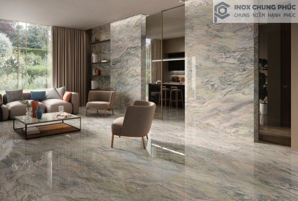 Nền nhà là nơi đi lại thường xuyên, để tuân thủ nguyên tắc không gây hoa mắt, quý khách hàng không nên chọn những màu sắc quá chói và nhiều vân chằng chịt như đỏ, xanh cho 1 không gian rộng lớn mà chỉ nên dùng những màu này để tạo điểm nhấn.